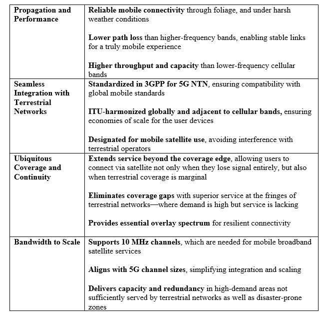 Direct-to-device satellite connectivity will redefine mobile service in the coming decade—but only if it is built on spectrum that can truly support user expectations. MSS L-Band spectrum is not just a technical enabler; it is the cornerstone of scalable, resilient, economically viable D2D connectivity.